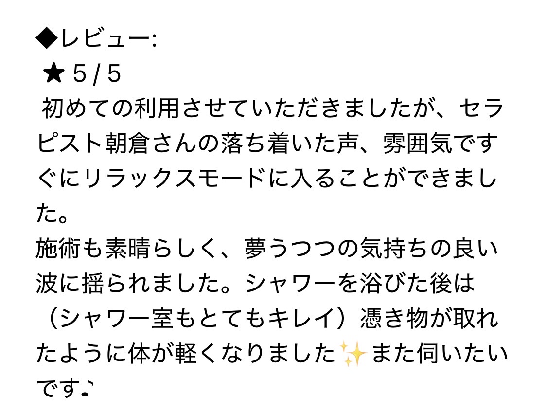 同じセラピストさんからのご感想をいただき